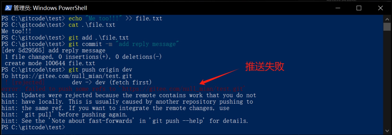 Push URL: git@gitee.com:null_mian/test.git