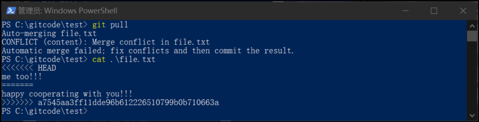 然后,在本地进行合并,并解决冲突,再推送
