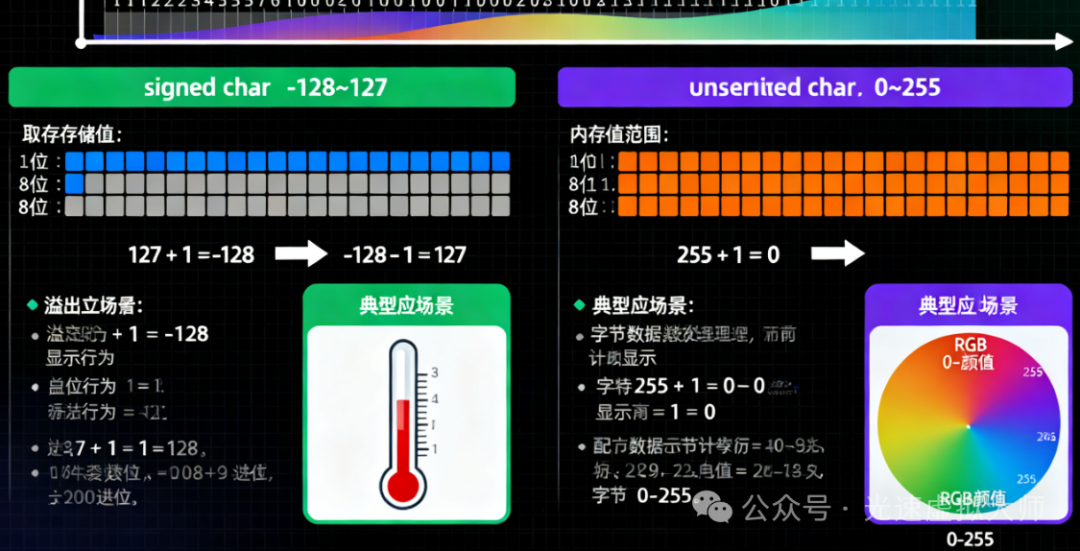 这个全面的示例展示了signed char和unsigned char的区别、使用场景和最佳实践,帮助您在不同情况下做出正确的类型选择。