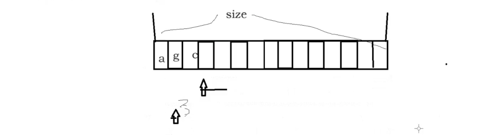 "数据像图中 a, g, c 一样先进先出 。那两个指针分别代表 读指针 和 写指针,它们在缓冲区上像追逐游戏一样循环移动:写指针往后填数据,读指针往后追着取数据。"