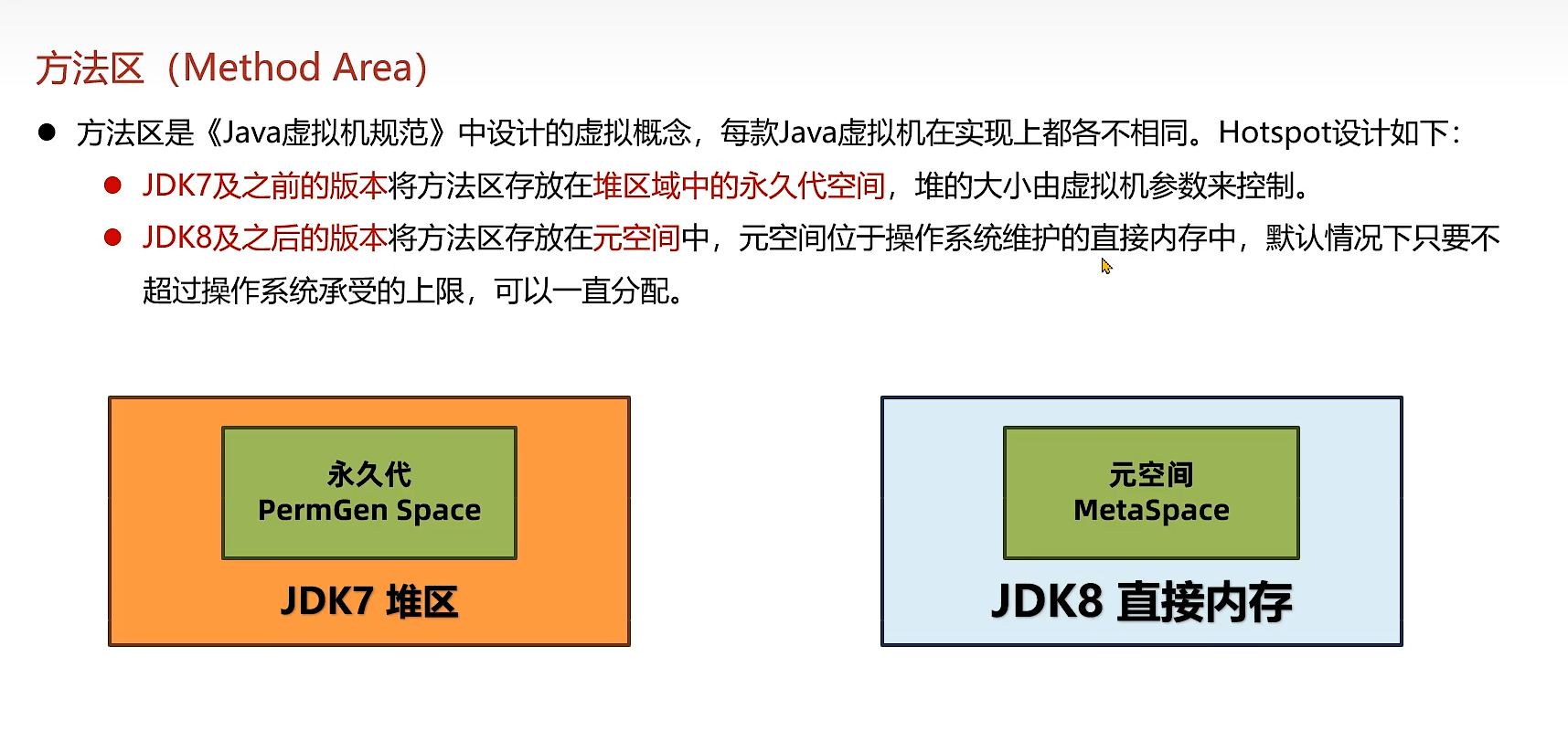 方法区只是比较虚的概念,java早期的版本方法区叫永久代,比较新的版本叫元空间