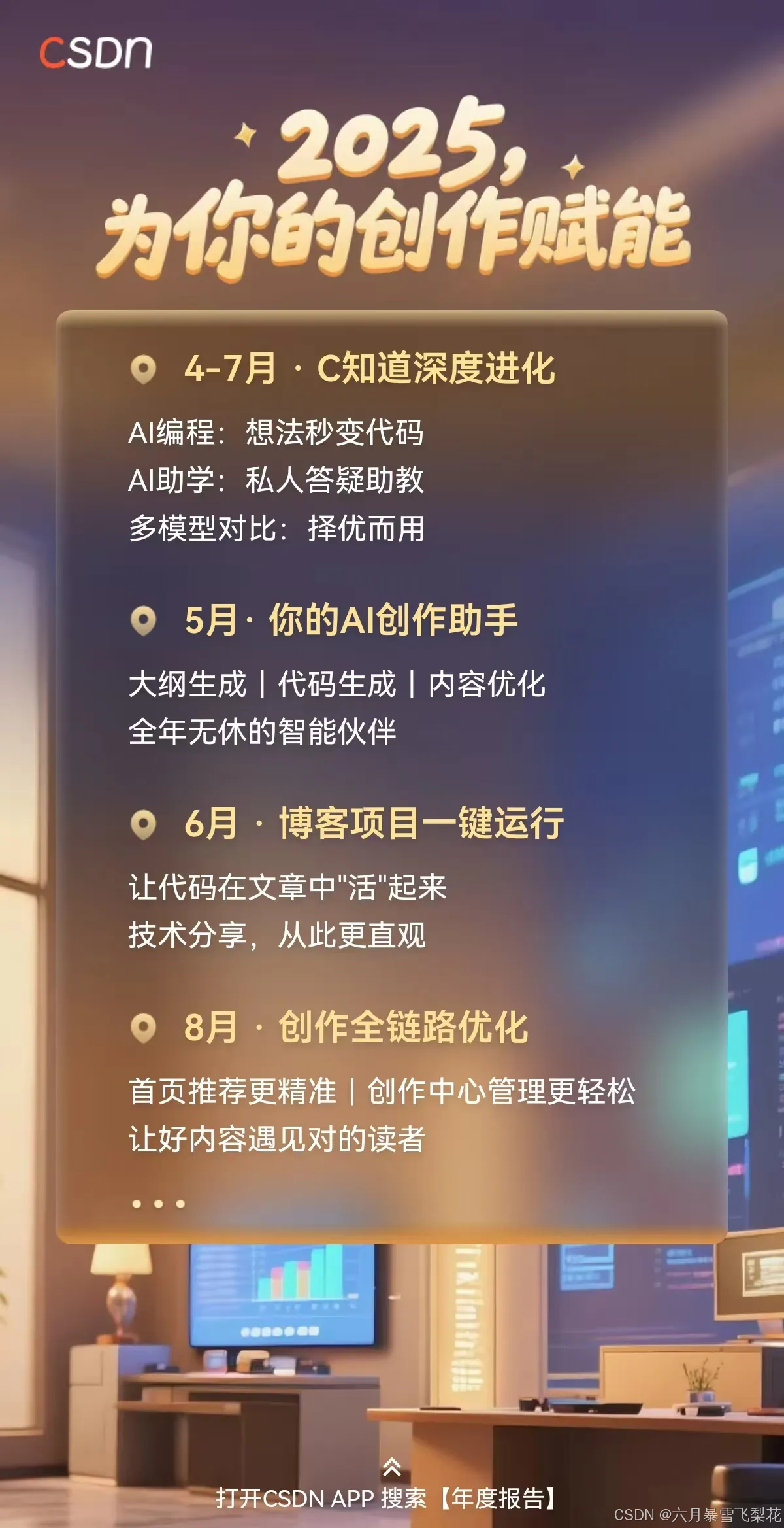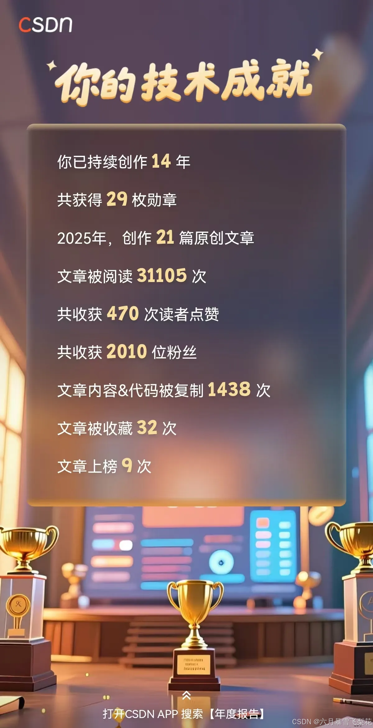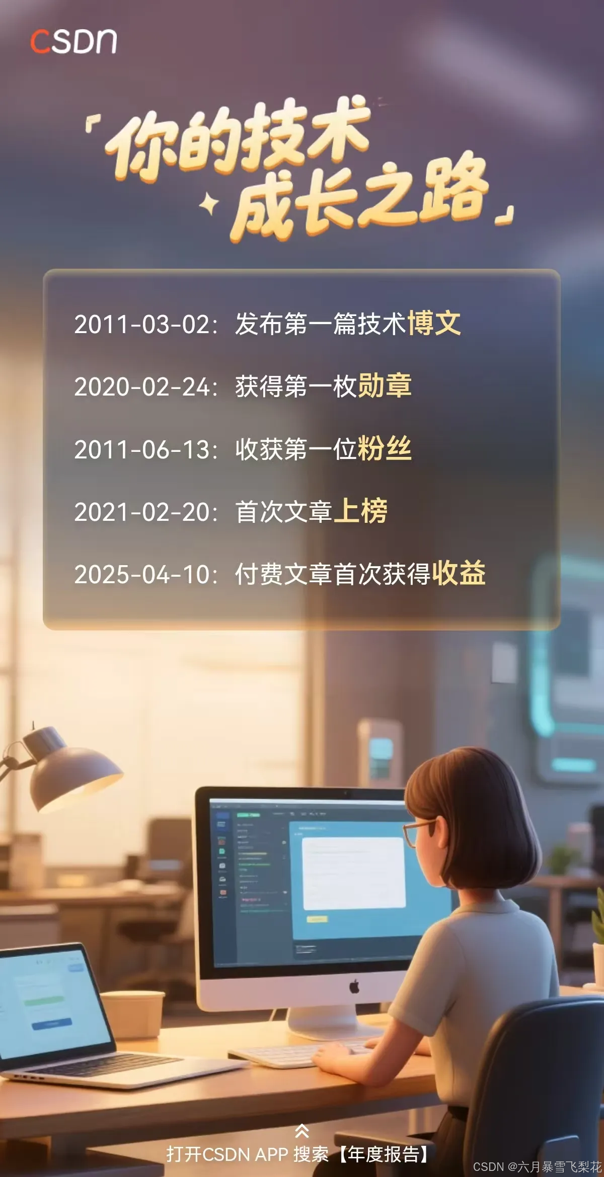 而在每次写作技巧上也学习其他博主,增加一些介绍博文介绍性的总结来推广自己,于是博文中多次引导读者关注账号或加入 "六月暴雪飞梨花社区",推动技术交流从 "单向输出" 转向 "双向互动",今年年初时给自己立下的理想是达到"万粉博主",目前看来得在2026年实现了。