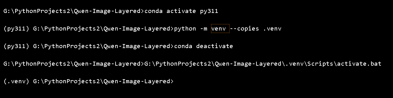 - 然后直接在该独立 Python 下创建 venv(加 --copies)。