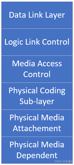 **Media Access Control:**媒体访问控制。数据封装/解封装、帧编码、媒体访问管理、错误检测、误差信号、串口化/去串口化。