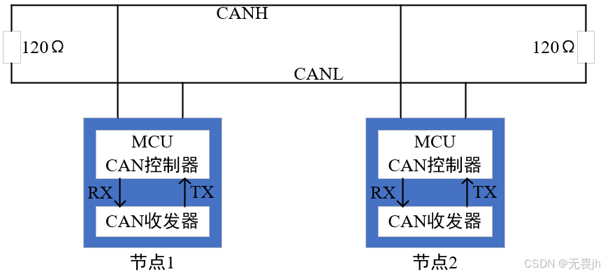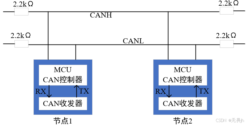 在低速CAN中,如上图的下半部分: