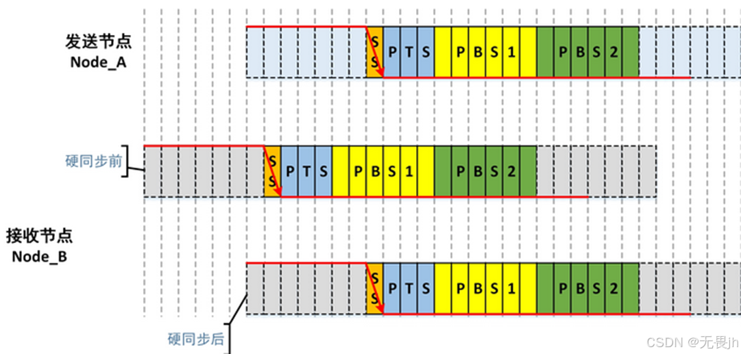 (3)接收节点Node_B强行将自己当前位的SS段拉到与SOF位的SS段同步。