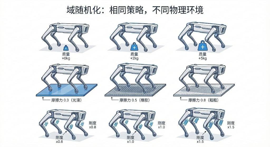 rel_standing_envs=0.02 这个参数看似简单,实则蕴含重要的训练技巧。在强化学习训练过程中,如果所有环境都持续发送非零速度命令,策略可能学不会站立不动。通过让 2% 的环境持续发送零速度命令,可以确保策略具备稳定站立的能力。这一技巧在实际机器人部署时尤为重要------用户下达的命令不可能永远是非零的。