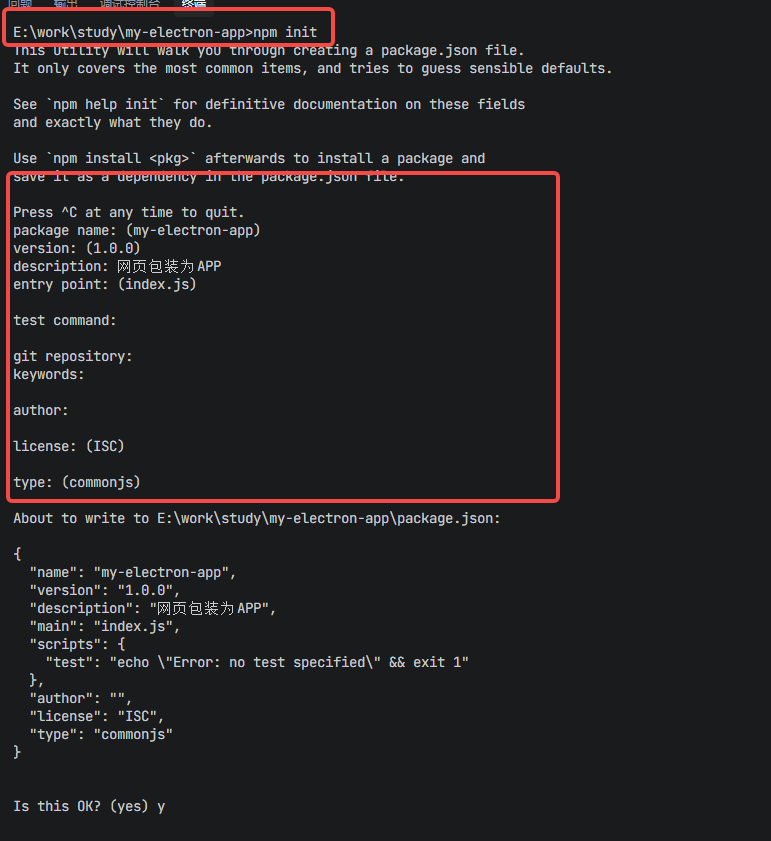 初始化时可以一站式回车,当然也可以填入相应的内容信息。执行完之后会生成package.json文件。