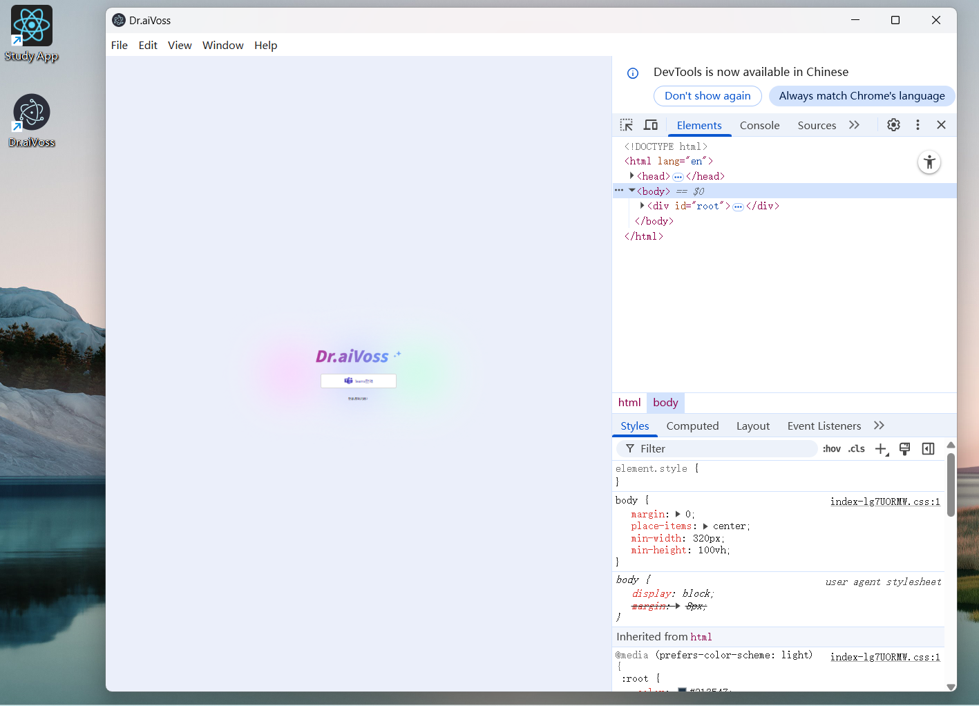 使用 Electron 将在线网页封装成独立的 Windows 桌面应用程序 Dr.aiVoss。