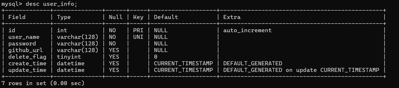 1.查看表结构