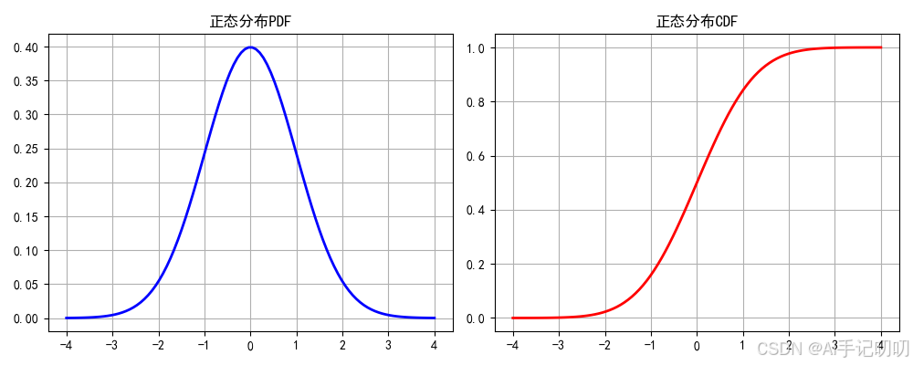 cdf = norm.cdf(x, mu, sigma) # 累积分布函数