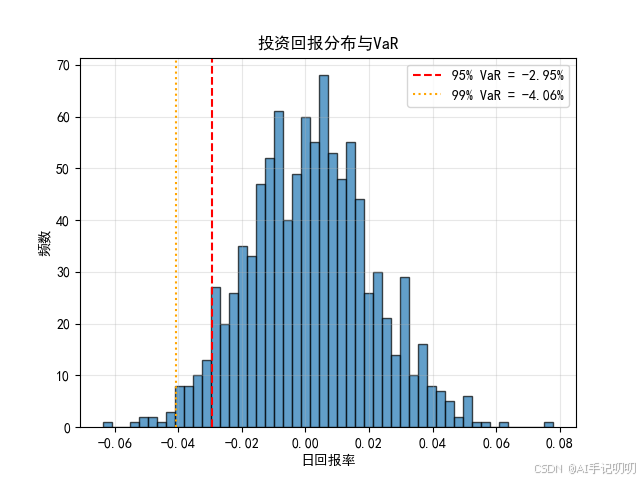 print(f"95%置信水平的VaR: {var_95:.4%}")