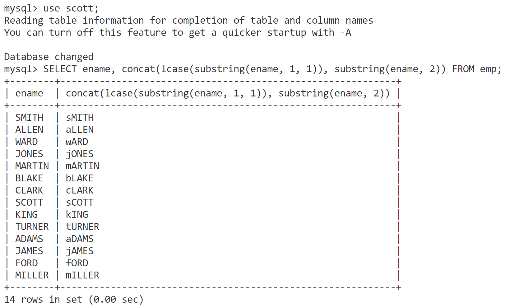 SELECT name, substring(name, 1, 2) FROM exam_result;