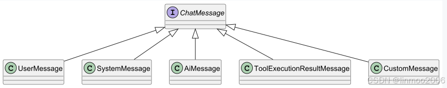 在Langchain4j 中定义了ChatMessage接口,从该接口实现了五种不同的提示词,如下图