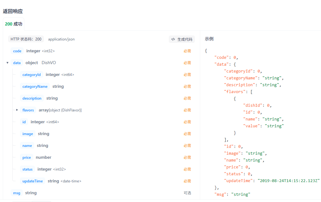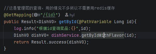 观察接口文档,显然这里的返回需要用到DishVO,且前端的参数传递是利用在url中直接传递所以需要加@PathVariable