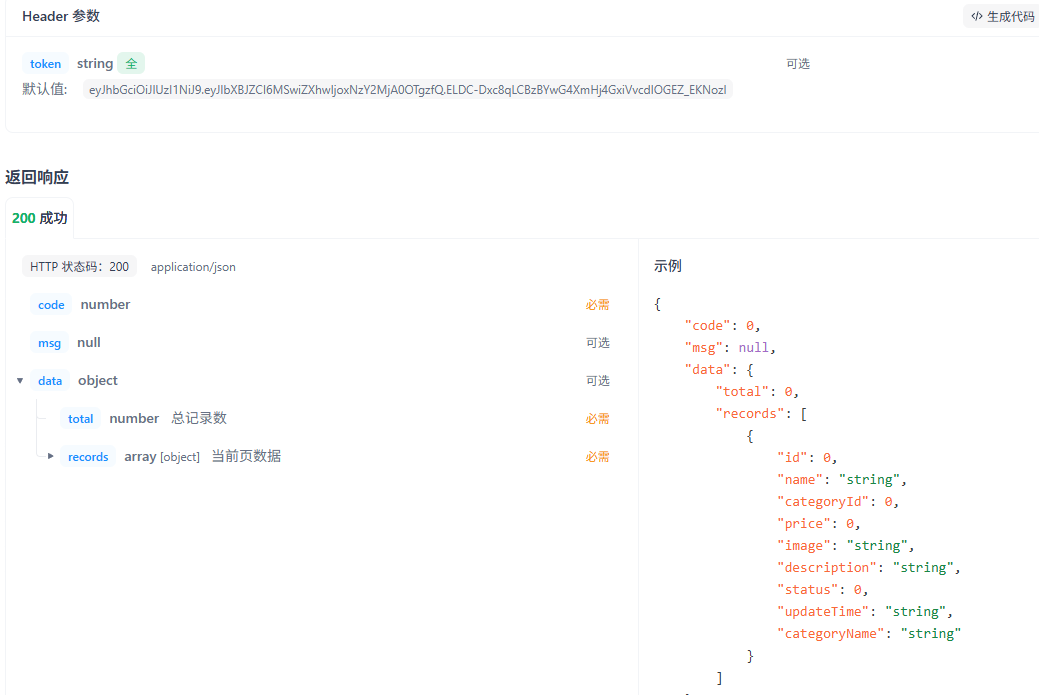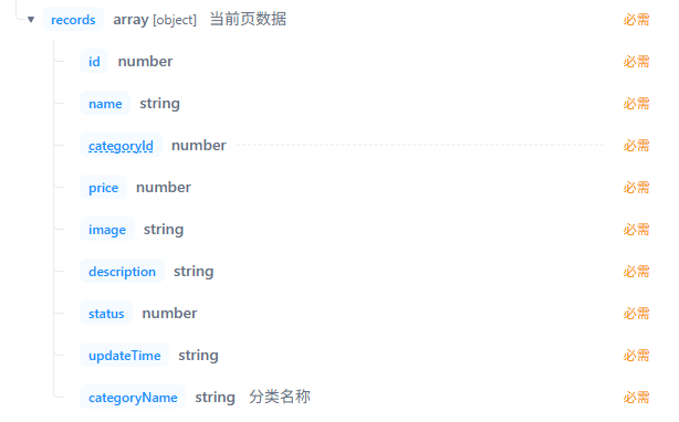 后端需要返回给前端total以及records这里的records是一个List数组且里面存储的对象需要包含如下字段: