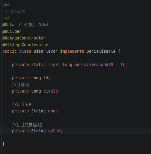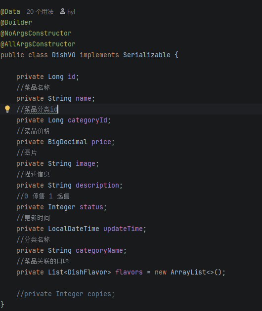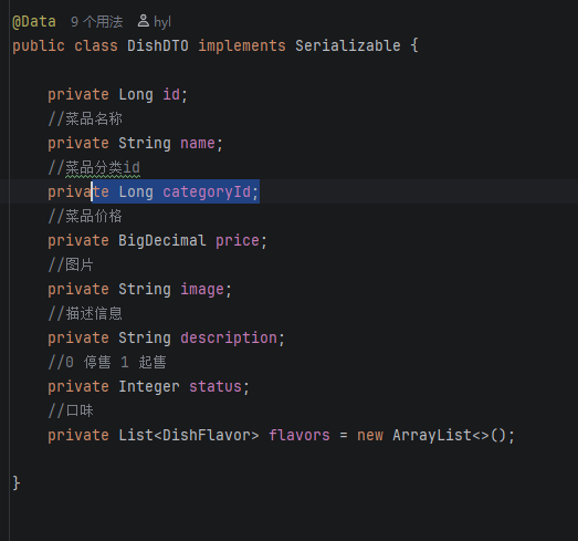 这里我们用不上这个List<DishFlavor>但是之后在修改菜品的时候可以用上......