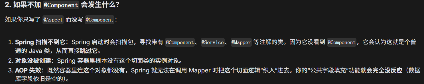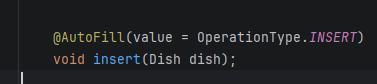 上述两图表示AOP的自动填充字段,即在执行下方的SQL之前会自动把四个字段填充到dish中...随后执行下方的SQL,执行完后会把自动生成的id也赋给dish..
