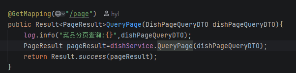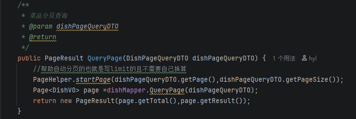 在service层得到查询的结果封装到Page<DishVO>中 ,这其实就是一个List但是多了一个Total属性
