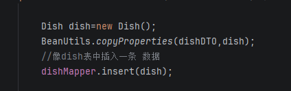(1)首先是先给Dish表新增,通常是将DTO对象转为entity,service部分代码如下图所示: