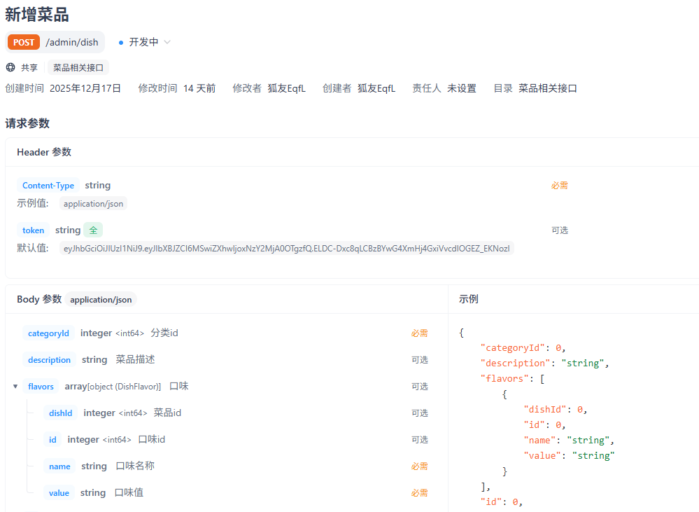 新增菜品的接口controller方法如下: