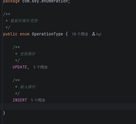 首先我们需要定义一个枚举类告诉AOP哪些方法需要自动填充,例如insert需要填充四个字段,而update只需要两个字段。所以才需要枚举类!