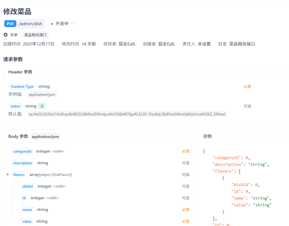 - 修改菜品信息