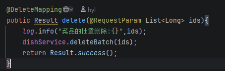 这里我们用的where dish_id in (id1,id2,id3)就是这是批量删除如果有一个关联了就不能删除!