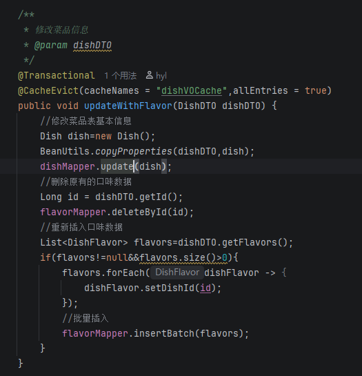 用到的mapper层有dish以及flavor,一个是update一个是insertBatch