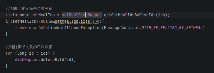 就拿id去查setmealDish表,如果能查到数据就代表有关联,查不到就表示没有