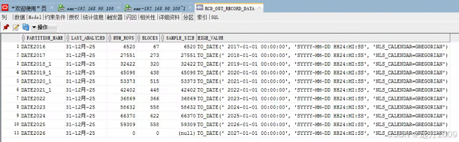 ALTER TABLE MDC_RCD_OUT_RECORD_DATAADD PARTITION DATE2026 VALUES LESS THAN (TO_DATE('2027-1-1','YYYY-MM-DD')) TABLESPACE MDC2026 ;