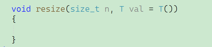 既然要使用缺省值,即默认构造值来填充新元素,那这个新元素就要有参数类型,可是我们的vector是封装成模板的,那么对于模板来说这个参数类型就有可能是任意类型,那我们缺省值应该给什么值呢?