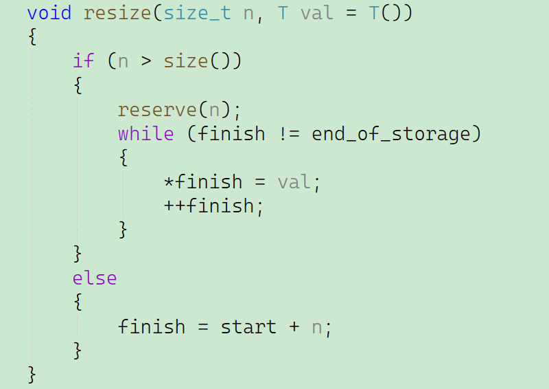 因为代码比较简单和string的resize差不多,在这里就不过多赘述,直接展示代码: