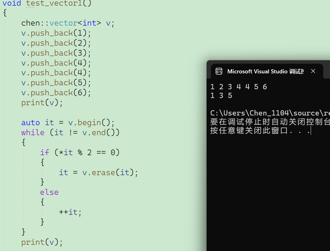 我们再用自己模拟实现的erase进行一下测试:
