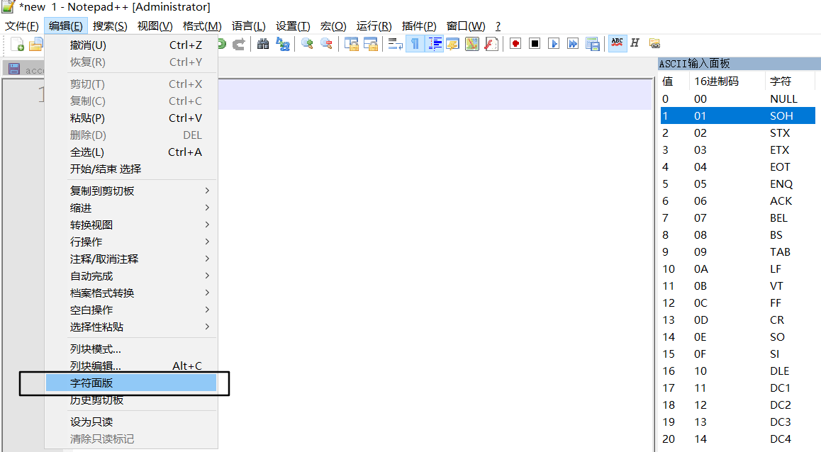 - 以 \001 作为分隔符时,下载后用 notePad++ 打开时看到的 SOH