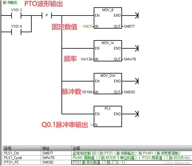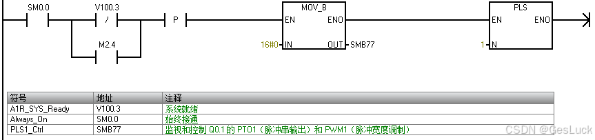 - 除了使用运动向导(PTO向导)配置外,这里使用的是 脉冲输出指令(PLS) 配合相关逻辑实现运动控制。