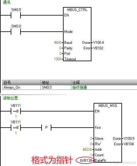 - PLC通讯参数(初始化主站MBUS_Ctrl)