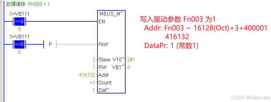 警报复位:Fn003 = 【16128(3F00)+3 】= 16131+ 400001=416134 (地址大于40001的,进一位400001为六位数)