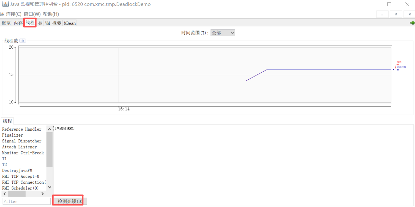 - 第三步:[线程]一栏点击"检测死锁"