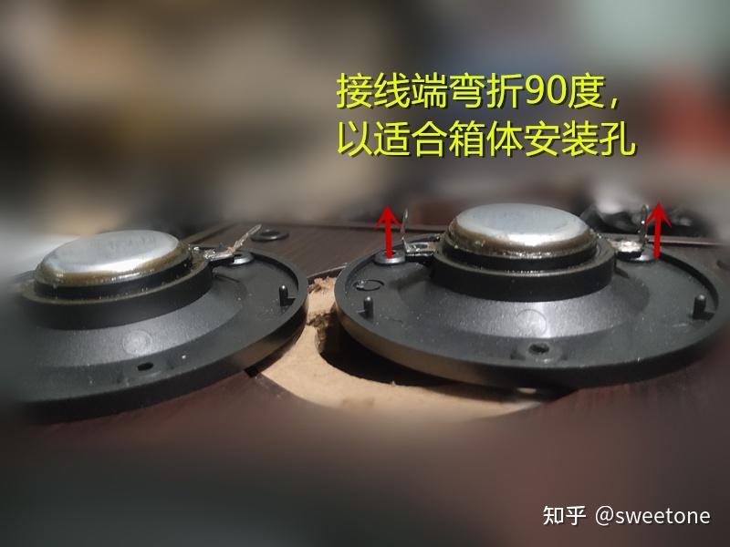 1.喇叭收到,观察到此高音喇叭接线端宽度比箱体安装孔要大,将喇叭接线端铁片用老虎钳弯折90度整形,这样此喇叭能装进箱体喇叭安装孔里了,喇叭线也能装在接线端上。