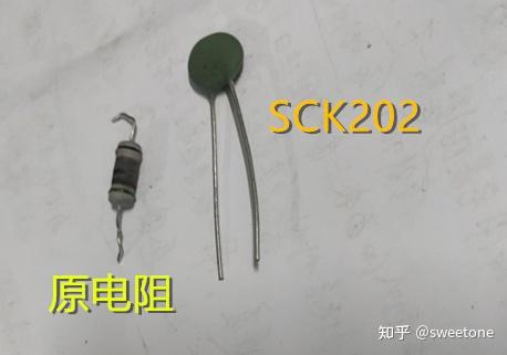 由于看不清烧毁的电阻RX1之阻值,分析其在电路中的作用应该是抑制通电时的浪涌电流。于是,将该电阻换为有抑制开机浪涌电流作用的NTC热敏电阻SCK202。