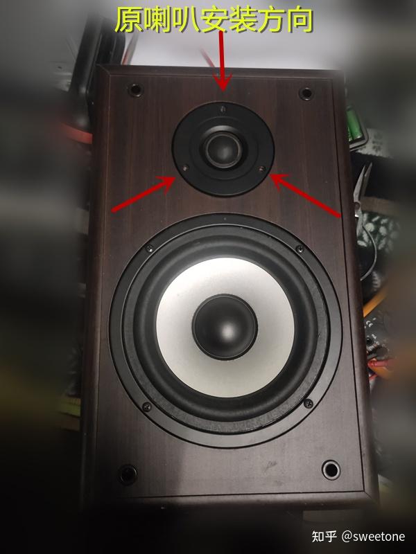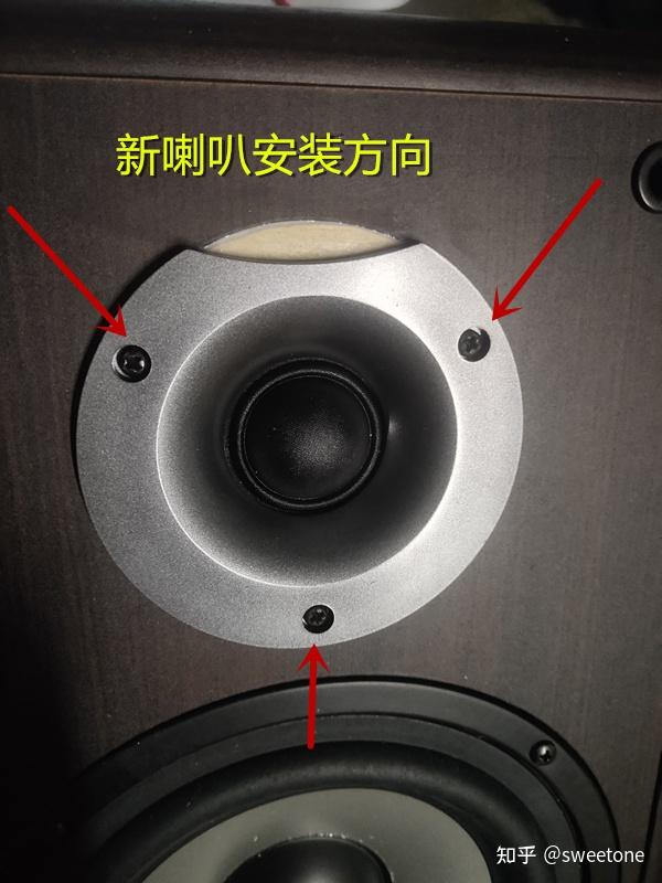 一对该品牌有源音箱,右声道的高音喇叭(丝绢膜软球顶)不响。拆下该高音喇叭,测得其接线端两脚之间阻值为无穷大,可见其音圈已经开路损坏。根据另一个音箱上好的高音喇叭阻抗,在淘宝上买到一款与原喇叭阻抗功率接近,面板尺寸接近的SONY高音喇叭(丝绢膜软球顶)。