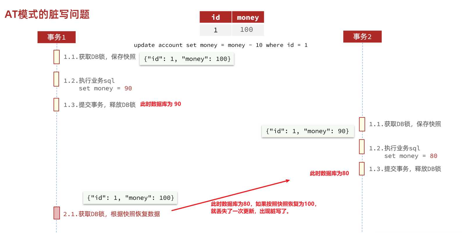 - 没有锁,没有事务隔离,会有脏写