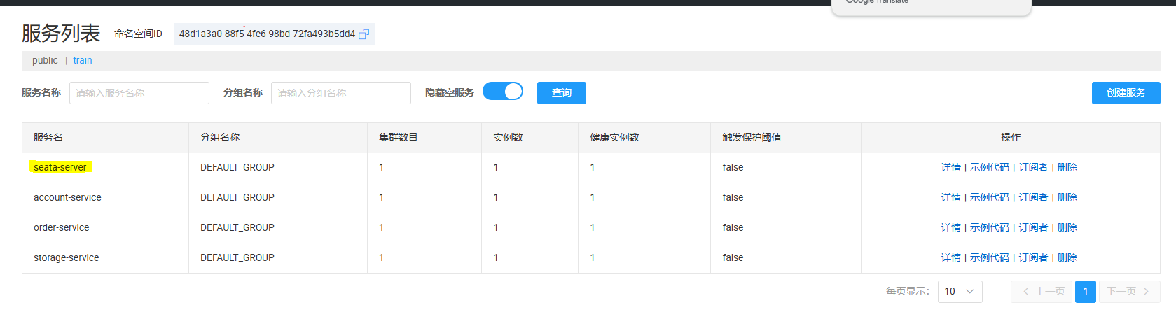 打开nacos控台,已经可以看到seata服务