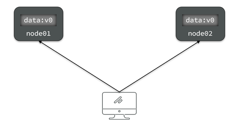比如现在包含两个节点,其中的初始数据是一致的: