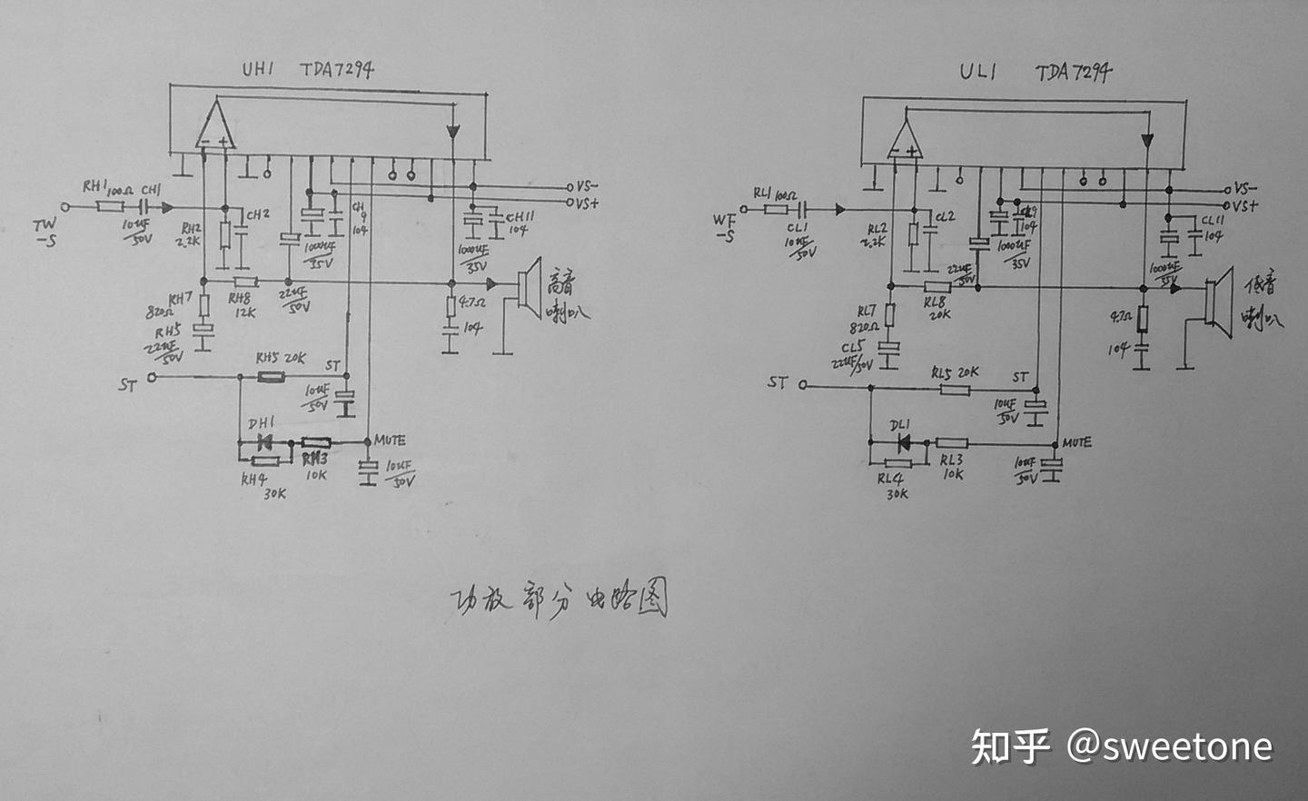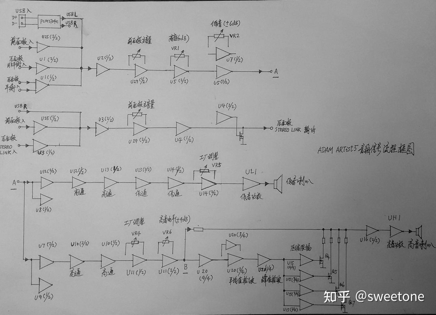 根据信号流程图,对音箱电路分几部分给予介绍。