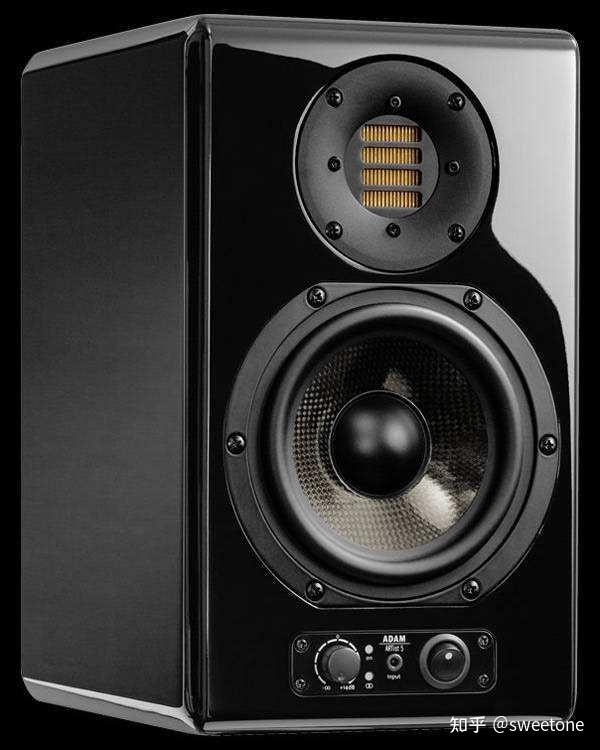德国ADAM品牌推出的多款监听级及HI-FI级音箱深受广大专业用户及发烧友的推崇,互联网上的好评无数,在此不再罗列。ADAM ARTIST5(艺术家5号)多媒体有源音箱,低音单元采用伊顿产的复合材料编织盆的5寸半扬声器,而高音单元采用ADAM自产的X-ART气动高音扬声器(属于海尔气动高音类型),该气动扬声器的高音频响可达50khz以上且失真率远低于普通高音扬声器。音箱整体钢琴漆涂装,光可鉴人。由于该音箱外观及音质的优良,虽然其上市有些时间了,但淘宝卖家目前的报价还在8000元以上(一对)。(音箱正面及反面如图1 、图2所示)。