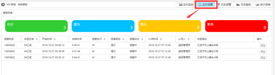 - 时段统计数据:显示统计时间段内的报警统计列表