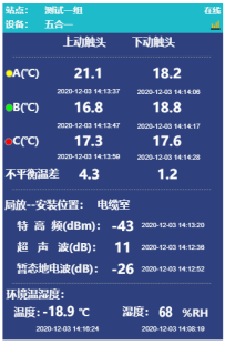 温度曲线:通过温度曲线图的查询,我们可以精确看到某个历史时刻的温度数据;也可以通过历史曲线变化,辅助电网分析柜体运行状态,提前做好维护准备。