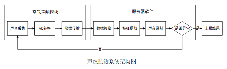 备声纹在线监测系统,是通过在变压器周边通过在电力设备周围安装一定数目的空气声呐模块(声纹监测装置),系统可以实时采集采集变压器、断路器、电抗器、电压互感器、电流互感器等重要一次设备的声音数据的声音采集设备发出的工作噪声,并进行声学特征提取与比对记录,可以通过声音特征判断设备的工作状态,当发现明显偏离正常工作状态的背景噪声时,则会实时报警,防患于未然。